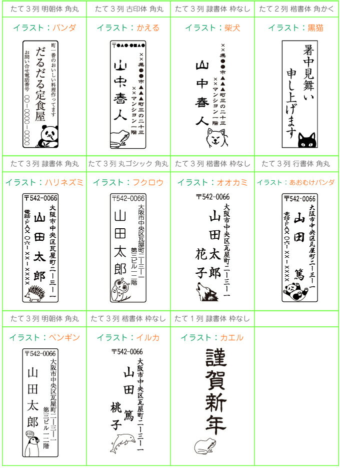 【スタンプ/動物/住所印/角型印/ゴム印/メッセージ/手紙】【イラスト 住所印 2060号】ゴム印 住所 角型印 スタラボ はがき 封筒 暑中見舞い 残暑見舞い 年賀状 絵 スタンプ メッセージスタンプ オリジナル はんこ 仕事 会社 ねこ ネコ いぬ 犬 パンダ かわいい キャラクター